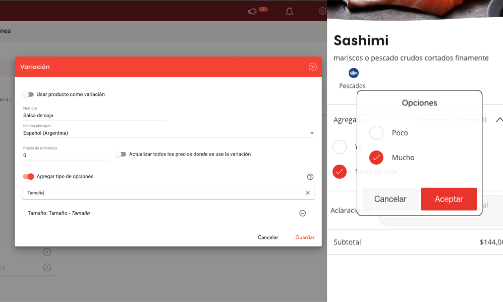 In the modifiers / variations of your products, you will be able to indicate an additional level of options for when your customers select that option. For example, you can set it to indicate whether they want a little, medium or a lot.
