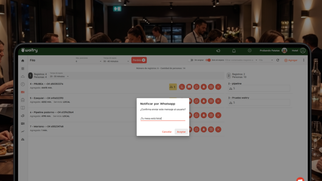 Seguro ya conocías esta función de Waitry, ¿lo nuevo? Hemos sumado una mejora dentro de la Fila de Espera Digital que facilita aún más tu comunicación con el cliente cuando su mesa está lista.
